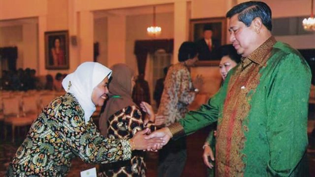 Oday Kodariyah saat menerima penghargaan ketahanan pangan dari Presiden ke-6 Susilo Bambang Yudhoyono, di Istana Negara, 3 Desember 2010. Foto: Kebun Tanaman Obat (KTO) Sari Alam.
