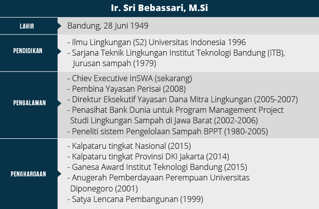 Bekerja sebagai peneliti sistem pengelolaan sampah BPPT sejak tahun 1980, secara resmi Sri Bebassari telah memasuki masa purnabakti pada tahun 2005. Namun masa pensiun tidak bisa menghentikannya untuk terus berkecimpung dalam bidang yang sudah sangat dicintainya ini.