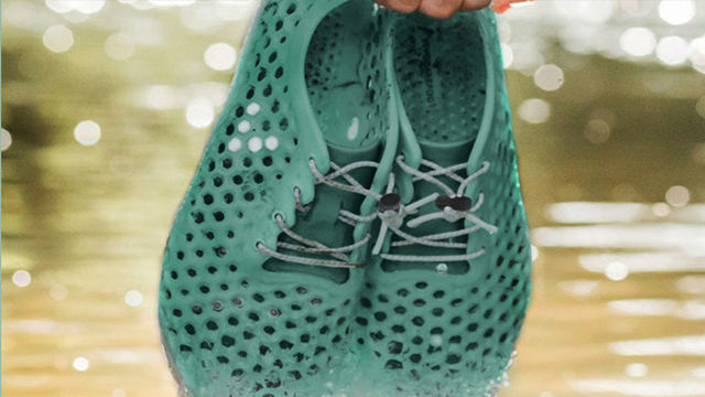 Koleksi Bloom dibuat dengan Rise by Bloom. Alga yang ada di lingkungan diubah menjadi bahan berpotensi tinggi untuk bahan sepatu.