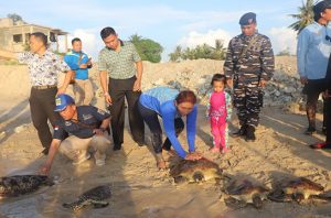 At least 30 turtles, mostly confiscated from illegal use, released in Natuna waters of Riau island on Sunday (05/05/2019). Turtle is one of the protected species based on national and international regulations because facing threats from nature and human activities.