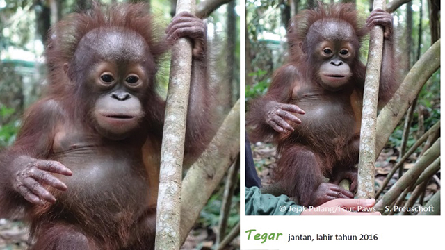 Kedua orangutan terindikasi malnutirisi dan mengalami gangguan pertumbuhan dan perkembangan tubuh yang ditunjukkan dengan tanda fisik tidak normal di tubuh.
