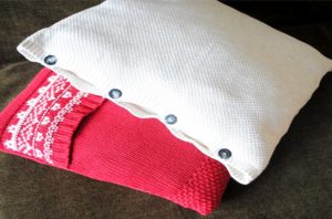 Jangan dulu buang sweater lama Anda karena kita bisa memanfaatkannya dengan mendaur ulang sweater lama menjadi sesuatu yang menarik lho, misalnya sarung bantal.