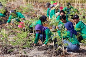 Memperingati Hari Kemerdekaan Republik Indonesia ke-73, Kementerian Lingkungan Hidup dan Kehutanan melakukan penanaman 800 batang mangrove bersama anak-anak muda.