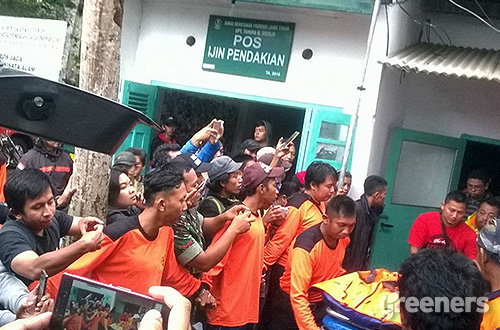 Puluhan petugas gabungan dikerahkan untuk melakukan evakuasi tiga mahasiswa Universitas Negeri Surabaya (Unesa) yang tersambar petir di Gunung Arjuno.